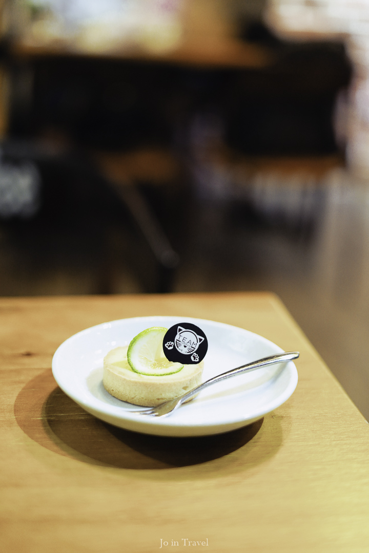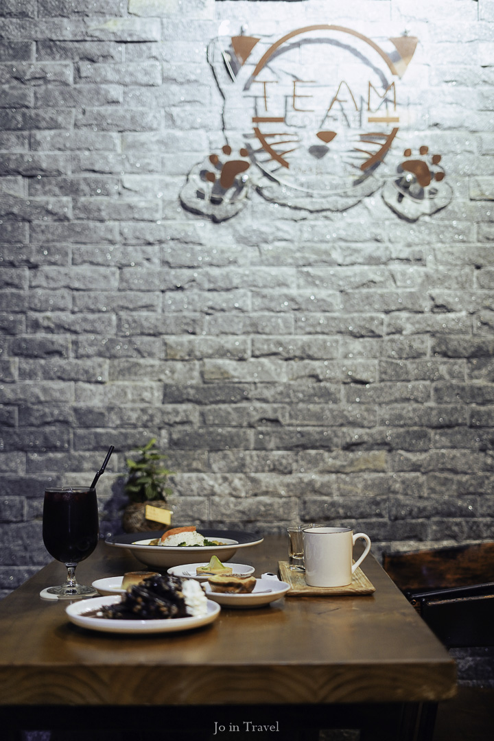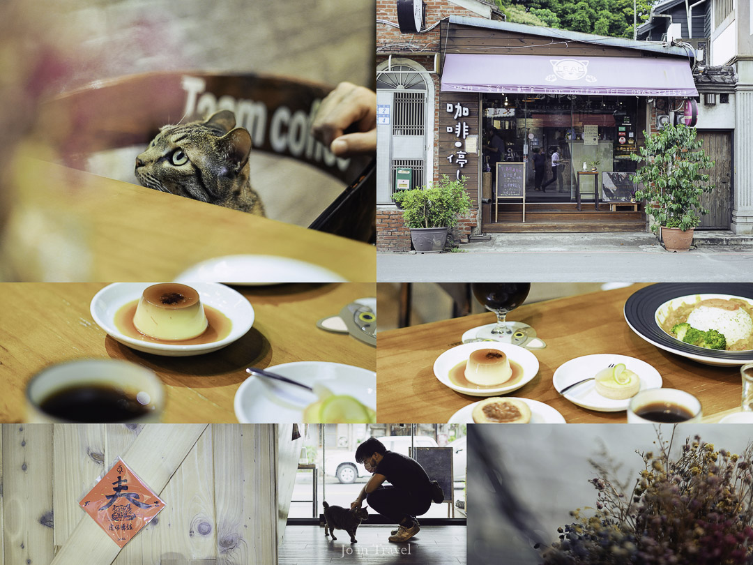 咖啡。停! 是一對姐妹共同創立的貓咪友善咖啡廳,空間的布置,甜點造型都是貓咪主題,就連店內的咖啡豆烘焙機都有貓咪的烙印(是說,店內的咖啡都是自己烘焙的)。