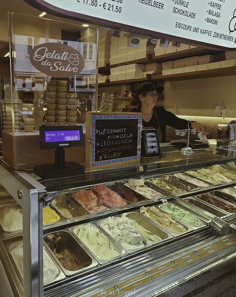 天使冰淇淋 Gelati da Salvo就在附近。味道不如38線上的那家,但一樣綿密,不死甜,牛奶吃得到羊奶的香味。我選了一個最小的餅乾,巧克力牛奶冰淇淋和釀櫻桃口味。